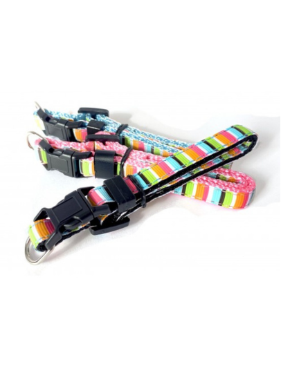 Nylon 3/8 » de largeur orné de ruban à motifs Rayé Rétro. Ajustable 7 » à 12 » pour chat.